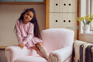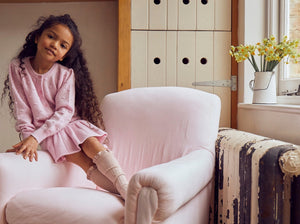 We use a luxuriously soft blend of GOTS-certified organic cotton and cashmere, chosen for its gentle feel on sensitive skin, durability, and low environmental impact.