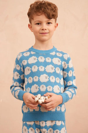 • Gentle Flock of Sheep: Features rows of sweet, classic jacquard-knit sheep inspired by fair isle patterns, creating a timeless and playful design.