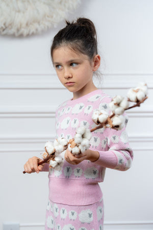 • Whimsical Flock of Sheep: Features the same joyful, jacquard-knit sheep from our bestselling jumper, creating a crisp, coordinated fair isle-inspired design.