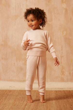 Le premier pantalon de bébé en rose blush avec 3 jeux de volants dans le dos pour accentuer les magnifiques fesses de bébé. Fabriqué avec le mélange le plus doux de coton biologique certifié GOTS et de cachemire de Mongolie intérieure, il gardera votre Tiny One bien au chaud tout au long de l'hiver. Associez-le à notre pull Baby Angel ou à notre cardigan Baby Popcorn en Blush pour une sensation de confort de la tête aux pieds.